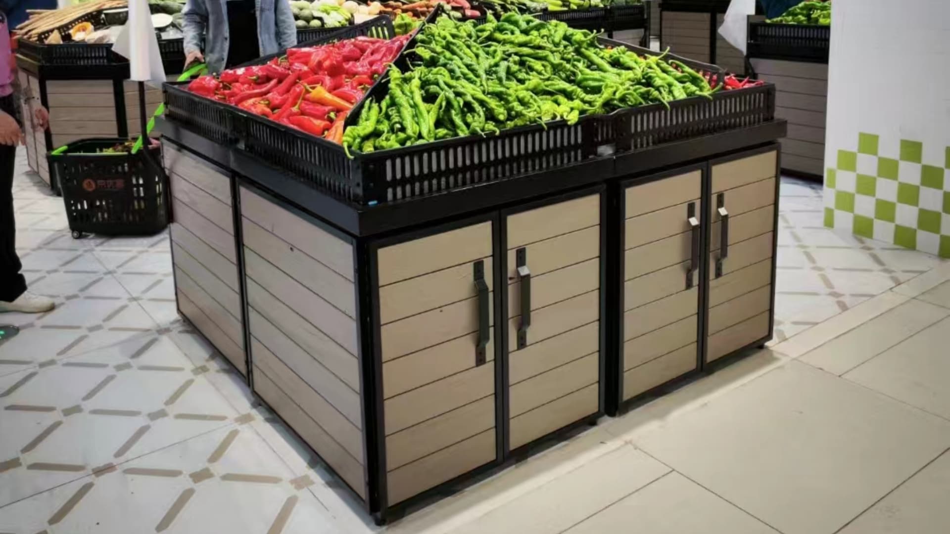 货架承载:鲜风款平堆喷涂款蔬果架